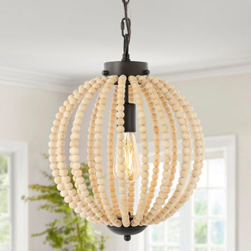 - This orb pendant's bleached wood accents will add a Bohemian touch to your farmhouse, beach house or traditional home