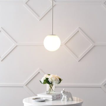 Industrial design modernized for today¡¯s homes, this single light globe pendant brings a feel of minimalism to kitchens, dining rooms, and any other space that could use a little extra light. Its canopy, down rods, and shade holder are crafted from metal, while the spherical glass shade suspends, almost weightlessly, above kitchen islands, breakfast bars, and beyond. It looks fabulous as an accent piece, or hung in multiples.