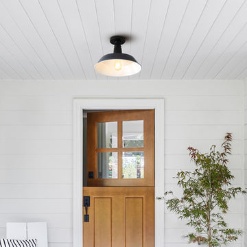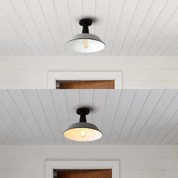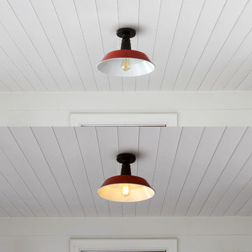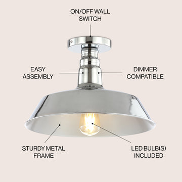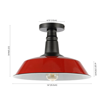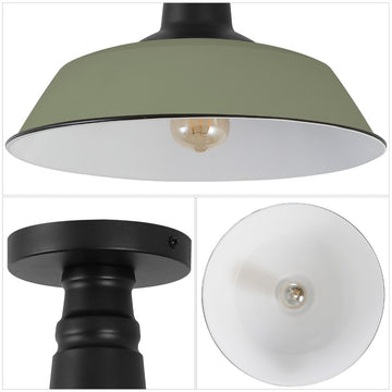 This vintage-inspired metal ceiling light is ideal for your modern farmhouse, rustic kitchen or industrial design - indoors or out. Features an Edison-style LED bulb inside a painted metal shade, accented by a decorative post. This ceiling fixture is perfect for the porch, entry, kitchen, bedroom, or hallway.