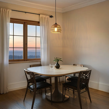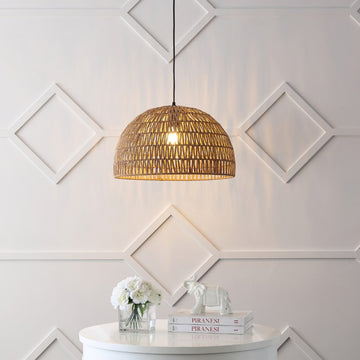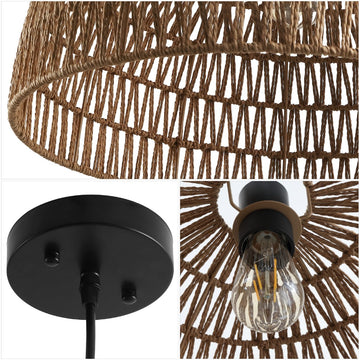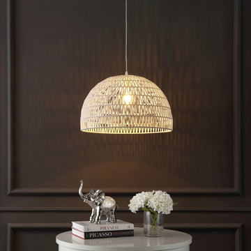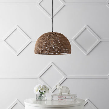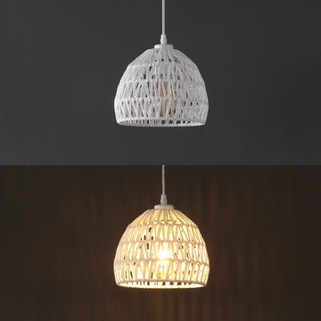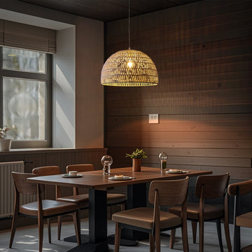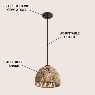 Modern design meets traditional craftsmanship in our woven dome pendant. Handwoven from paper or rope wicker onto a sturdy metal frame, this ceiling fixture brings artisanal texture and a Bohemian touch to any living room, bedroom, or dining room. The adjustable drop—ranging from 11" to 88" depending on style—ensures it fits ceilings of any height, blending style and function in one elegant piece.