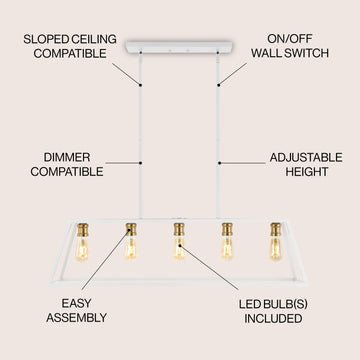 - Takes 5 bulbs and compatible with any 9W LED or 60W TYPE "A" or 13W CFL