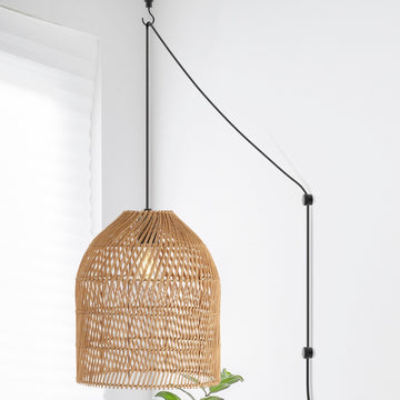 - This rattan swag pendant adds instant Boho-style; has the option of either being plugged in or hardwired