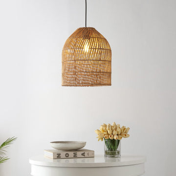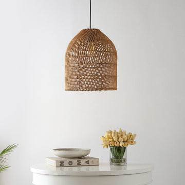 This Boho-inspired rattan pendant light is perfect for both traditional and modern homes. The 13" domed rattan shade is accented with a stylish swirl pattern. The natural rattan helps diffuse a single bright LED light bulb; plug in or hardwire for instant chic in the kitchen, dining room, bedroom, or office.
