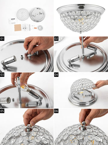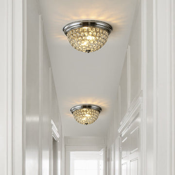 Even low ceilings can sparkle with our modern, flush-mount light fixtures. This pair of glam style dome lights are embellished all over with crystal prisms. The dimmable LED bulb gives off bright, clear light. Inspired by old Hollywood, this set of two shimmering light fixtures adds a touch of glamour to your hallway, bedroom, bathroom, or closet.
