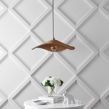 This modern pendant light adds coastal style to any space with the sweeping curves of its rattan shade. Natural rattan is combined with metal fittings and a an LED Edison bulb for bright, warm light. Use two or three over a kitchen island, bar, or dining table for a contemporary look.