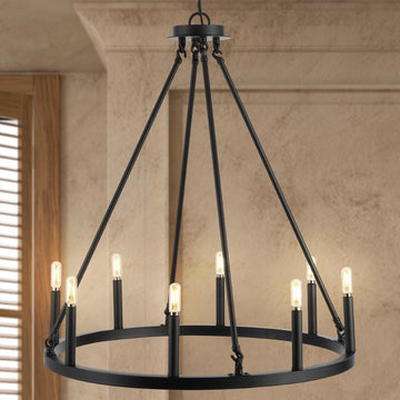Oberto Ring Iron Rustic Farmhouse LED Chandelier