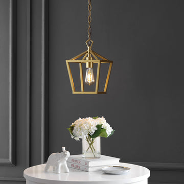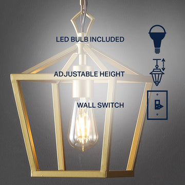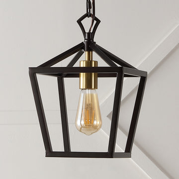 Add some industrial flare with our classic metal pendant. The angular lines of its frame and rustic chain makes it the perfect way to complement your farmhouse home. Whether used above your dining table on its own or grouped with others above your kitchen island, this pendant is a unique yet vintage addition to your space.
