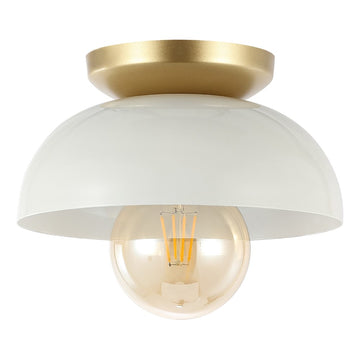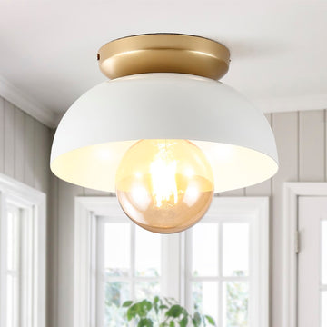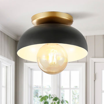 Add modern glam to your home with our minimalist-inspired ceiling fixture. A large LED globe hangs from a two-tone metal dome shade; the Edison-style bulb provides plenty of warm, bright light. Perfect for low ceilings, this light fixture adds an elegant touch to the hallway, living room, bedroom, or entry.