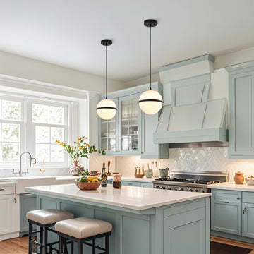 Modern design meets vintage style in this glass globe pendant light. The two-tone design features metal fittings and a frosted globe shade for an uncluttered, minimalist look. LED bulbs provide bright lighting for the kitchen island, dining table or office.