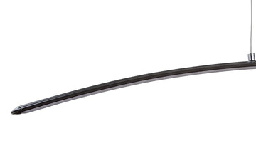 A single, curved line is suspended by clean lines in this sleek pendant. An easy addition to a contemporary space, this piece features an adjustable drop and an integrated LED light. Perfectly suited to hang over a kitchen island or dining area.