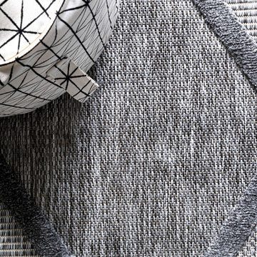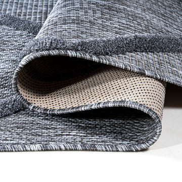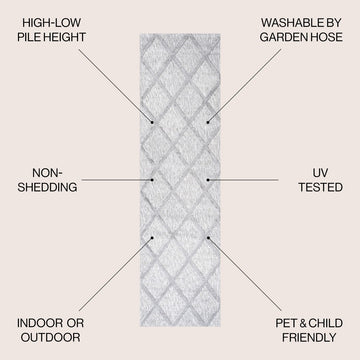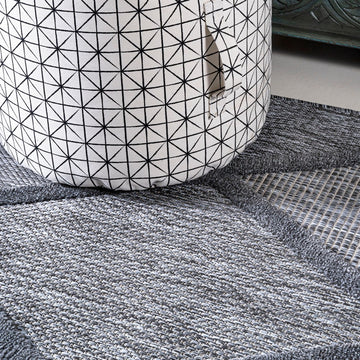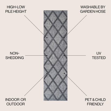 Inspired by timeless Mediterranean patterns, this indoor-outdoor rug adds neutral gray tones to a kitchen, living room, bedroom or dining room. The dark gray trellis design is an easy maintenance solution for homes with kids and pets. Outdoors, this rug adds classic color and traditional pattern to your patio or porch.