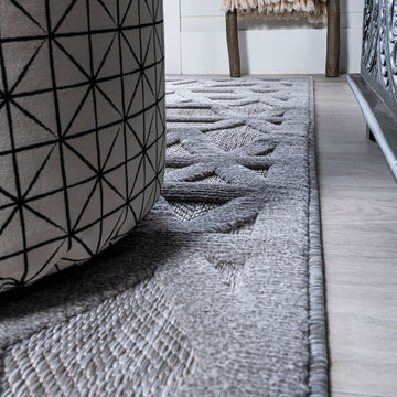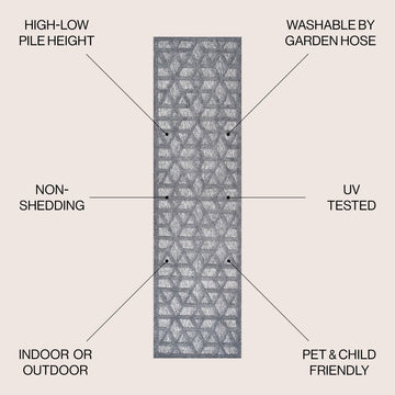 Inspired by antique Moorish tile designs, this neutral indoor/outdoor rug adds subtle, elegant pattern to your porch, patio or sunroom. Mingled threads give this geometric rug a vintage vibe that's perfect for an entry, kitchen, hallway, living room or bedroom. The pet-friendly and kid-proof low-pile design makes it easy to clean, and perfect for the modern beach house.