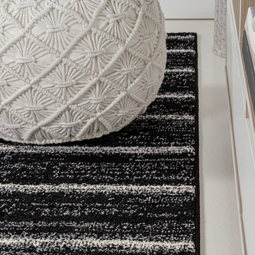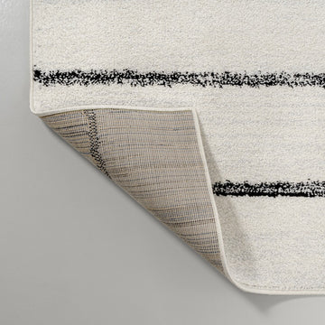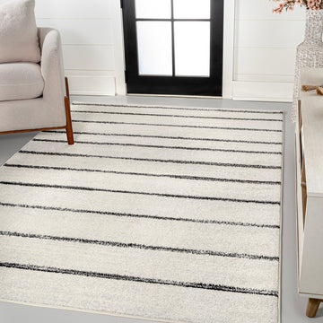 The neutral gray stripes in this rug are the perfect backdrop for modern furniture. Subtle tones of ivory and gray mingled throughout the background add a hand-woven effect. Simple and chic, this versatile rug is at home in a modern loft or classic farmhouse interior.