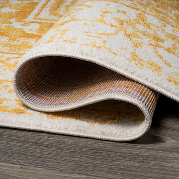 An ornate medallion in the center of this design recalls traditional Persian rugs, but the orange color palette has a mid-century, Bohemian vibe. Ivory mingled with shades of orange creates a vintage, distressed look. Use this stylish rug in a city apartment or coastal home, for a bedroom, living room, dining room or entry.