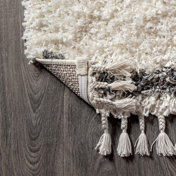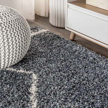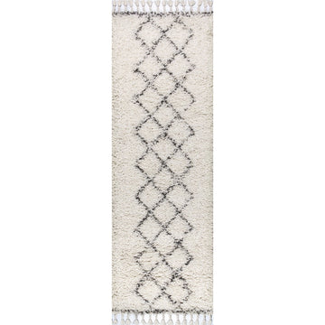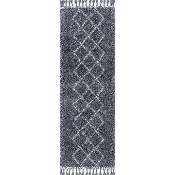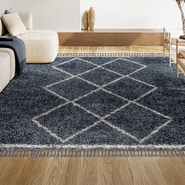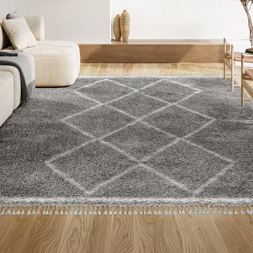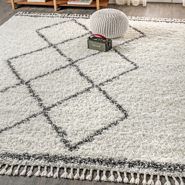 Beautiful mercer Shag Plush Tassel Moroccan Tribal Geometric Trellis Area Rug