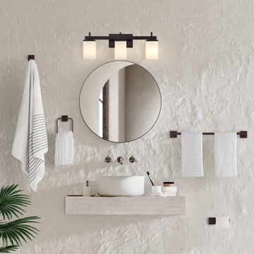 Caia 22.38" 3-Light Modern Contemporary Vanity Light with Frosted Glass Shades and Bathroom Hardware Accessory Set