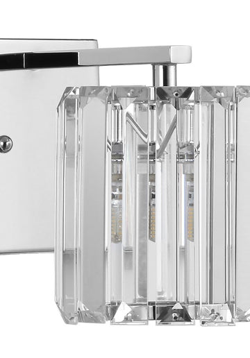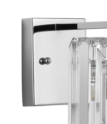 Bring on the glam with our Art Deco-inspired glass prism wall light. A single LED bulb casts a warm glow, providing plenty of light. Sparkling glass and chrome add feminine style to your bath vanity, kitchen, hallway, or entry.