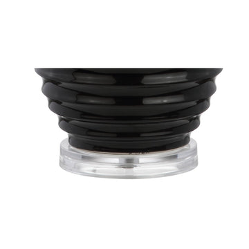 Boasting a spiraling, ribbed base made from a white glaze on ceramic, this lamp offers stylish acrylic detailing that includes a base plate and finial. The shade adorning this lamp is a subtly textured ivory linen hardback drum and the cord is silk-wrapped. We love the sculptural simplicity of the classic vessel shape, and the perfectly proportioned height.