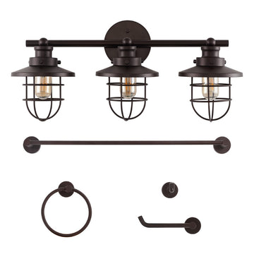 Ellis 24" 3-Light Industrial Farmhouse Vanity Light with Bathroom Hardware Accessory Set