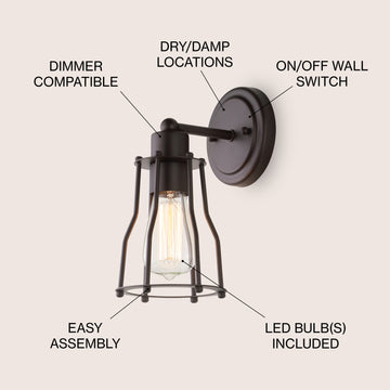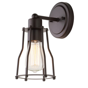 Define your bathroom or vanity space with the handsome industrial look of this chrome sconce, which can be hung in either direction according to your preference. This classic industrial cage bath light features a hand-worked chrome-plated frame and round wall plate in a polished finish. Edison-inspired bulbs add a vintage touch within the fixture, while the machined details of the shade cage evoke the turn of the century, when exposed bulbs were in vogue as only the most affluent households had upgraded to electricity from candlelight. This trend-forward, yet classic style is sure to be a classic for another century to come.