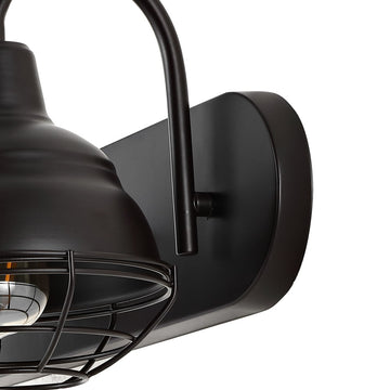 This caged-bulb vanity light is the perfect addition for your modern farmhouse or industrial interior design. Three Edison-style LED bulbs provide warm light, each protected by a caged metal shade. This rustic design is ideal for bringing light to bathroom vanities and kitchen sinks.