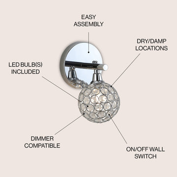 Crystal prisms are set like jewels into a globe, for a glamorous vanity light with Hollywood Regency flair. Add vintage glam over a sink or vanity, for an Art-Deco-inspired bathroom. A sparking chrome finish makes them perfect for contemporary spaces too.