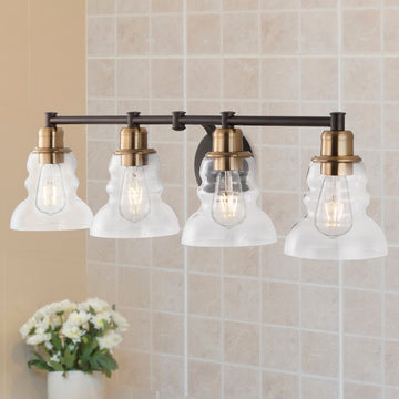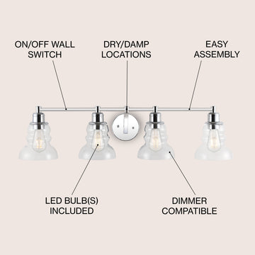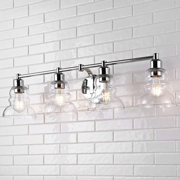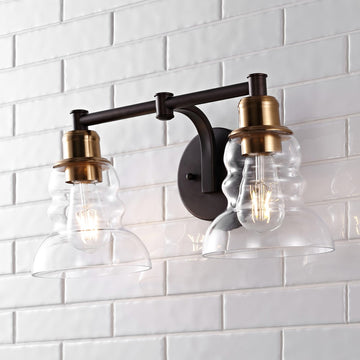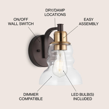 Elevate your urban interior with our modern take on a classic wall light. The industrial Edison-style LED bulb casts a warm glow, providing plenty of light. A clear glass bell shade adds elegant vintage style to your bath vanity, kitchen, hallway or entry.