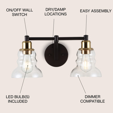Manhattan Vintage Metal/Glass Industrial Rustic LED Vanity