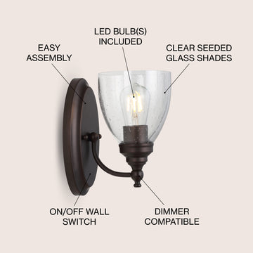 Seeded glass, noted for its well distributed bubbles and thick shade wall, originally was a feature of South American glass made with unrefined natural materials. But once European customers began prizing it for its beauty, it soon was manufactured by artisans all over the world. Install a bit of this old-world charm with this gorgeous glass and metal sconce, which is perfectly suited for any style of decor.
