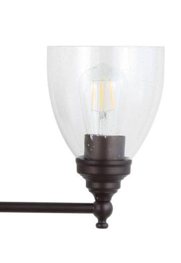 - Finished in oil rubbed bronze, the metal and glass body would suit any color palette and won't oxidize