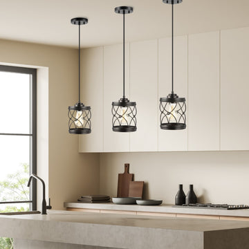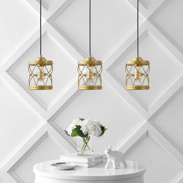 Our set of three pendant lights have filigree-inspired metal shades for an upscale Bohemian touch. Each pendant includes a single Edison-style LED bulb for bright, warm light. The small size is perfect for over a kitchen island, or line them up over a dining table or office desk.