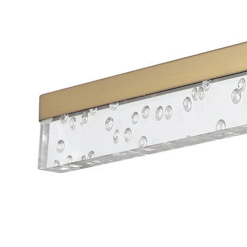 This light's linear design features clear acrylic with a seeded glass look, and a black metal finish