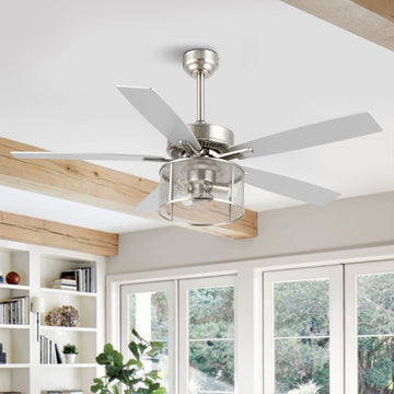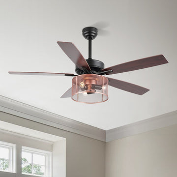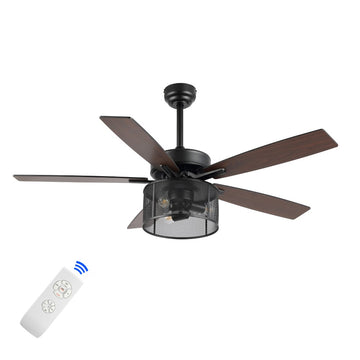 Max 52" Farmhouse Industrial Iron/Wood Mobile-App/Remote-Controlled LED Ceiling Fan