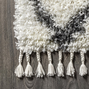 Mercer Shag Plush Tassel Moroccan Tribal Geometric Trellis Area Rug
