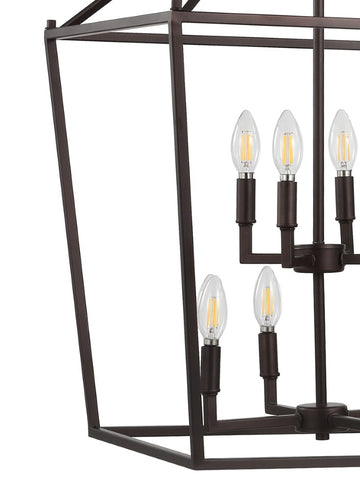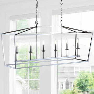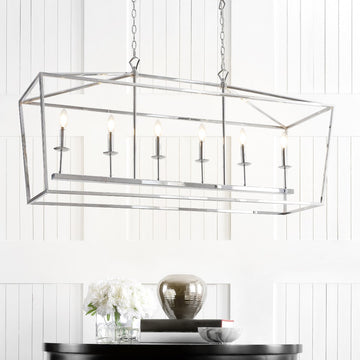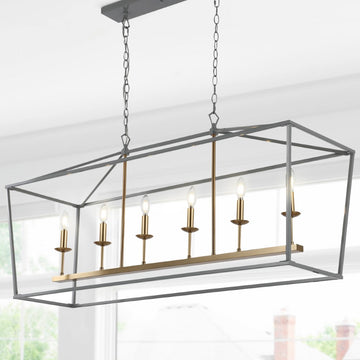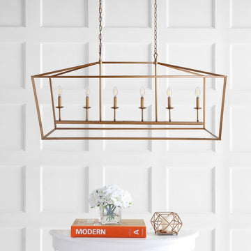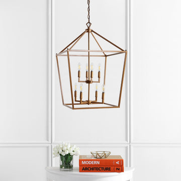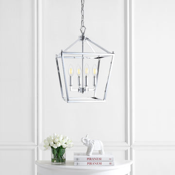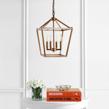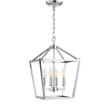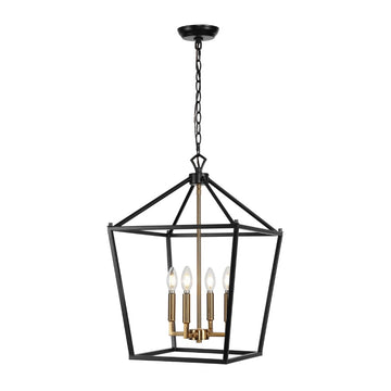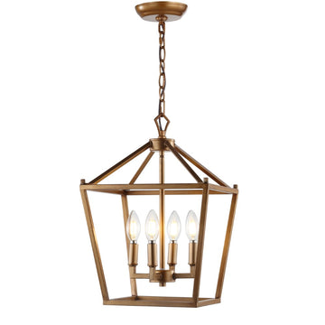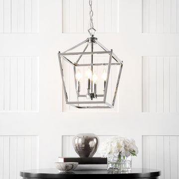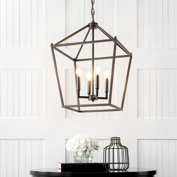 - An open lantern-style design gives this pendant a welcoming aesthetic