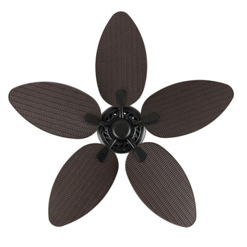 This fan's vintage silhouette with palm-frond blades gets a modern touch in an all black finish