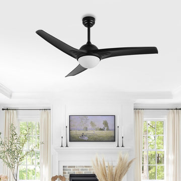 The all-black body and fan blades complemented by a frosted LED orb light create this fan's modern silhouette