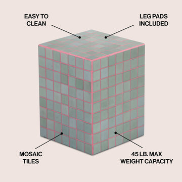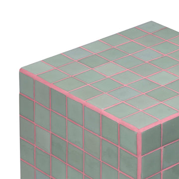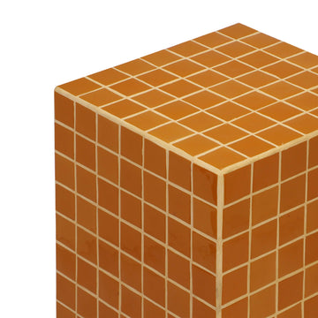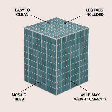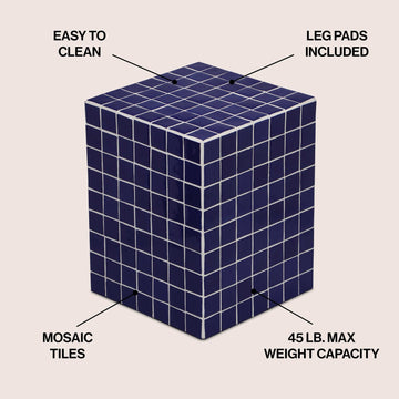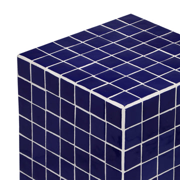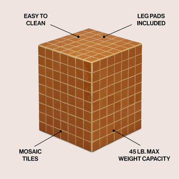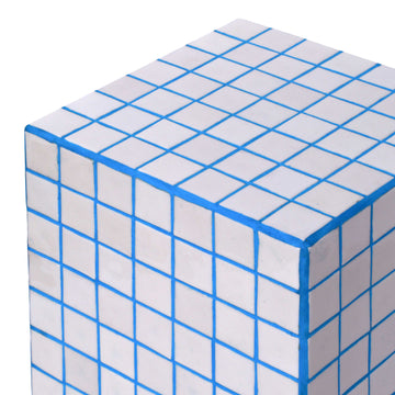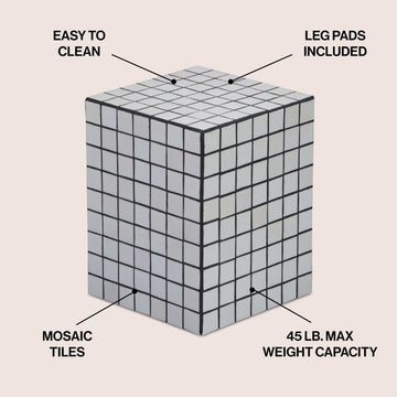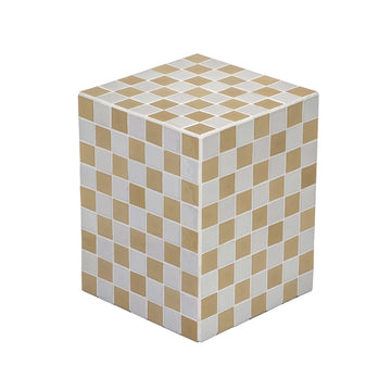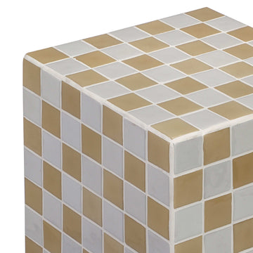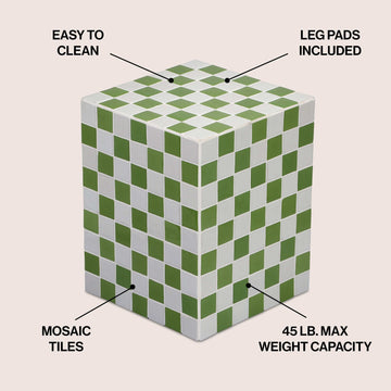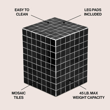 Embrace Maximalism with our modern, Bohemian-chic checkerboard accent table. The sturdy MDF cube is finished with 2" ceramic tiles. Use this versatile accent as a nightstand, or a pedestal for your favorite plant.