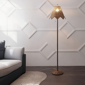 Traditional design style gets a coastal twist with this chic rattan floor lamp. Made from real rattan, this lamp is topped with a scalloped rattan shade and an LED bulb for warm, bright light. Tuck one into a corner for cozy charm in the living room or bedroom.