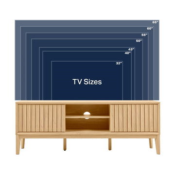 Elevate your home with our coastal TV console. Designed with two sliding doors and bohemian style panels, this console spans 58 inches wide and is fit for any living room. Whether your home is a farmhouse retreat or transitional apartment, this console is the perfect addition.