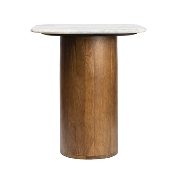 Milos 18" Rustic Minimalist Square Marble/Wood Accent Table