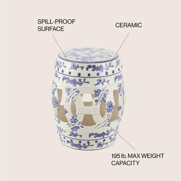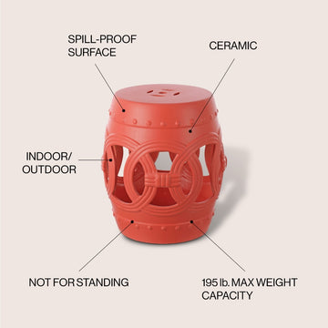 - With its spill-proof ceramic glaze, this gorgeous stool makes a stylish small drinks table or plant stand