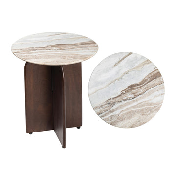 Naomi 18" Rustic Minimalist Marble/Wood X-Base Accent Table