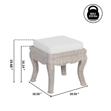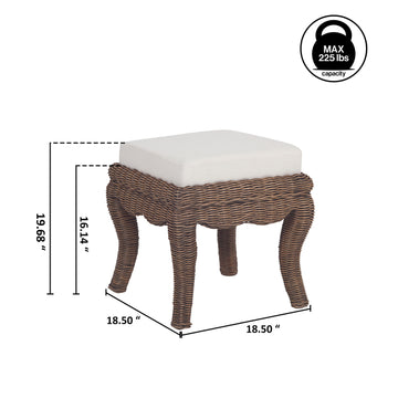 Rowan 19.7" Bohemian Designer Woven Rattan/Wood Vanity Stool