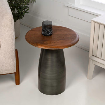 A stylish combination of modern and rustic finishes, this small square table is just the right size to pull up beside a chair. It features a solid mango wood top set on a tapered metal base for a unique blend of textures. Use this table to create a bedroom reading corner, or use them in the living room as drink tables.