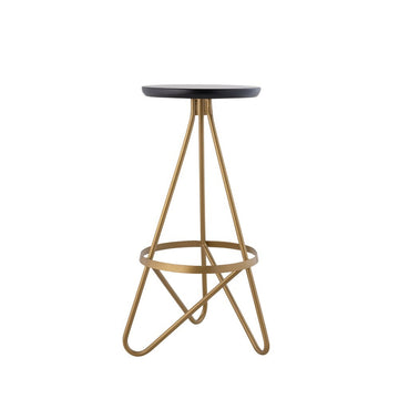 Elevate your home with our art deco inspired barstools. Made of a sleek circular seat and metal base, these barstools are equipped with an integrated footrest. Our stools stand 30 inches high and are a durable but stylish way to add seating in any dining or bar area.