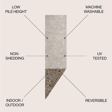 - Reversible design features different shades of gray and cream on one side and black and brown on the other