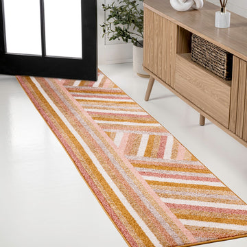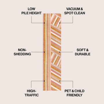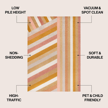 Add whimsy to your home with our colorful striped rug. This geometric rug will bring flare into any casual or contemporary room, whether it be a playroom or a lively office space. With a low pile, this rug is easy to maintain and great for kids!