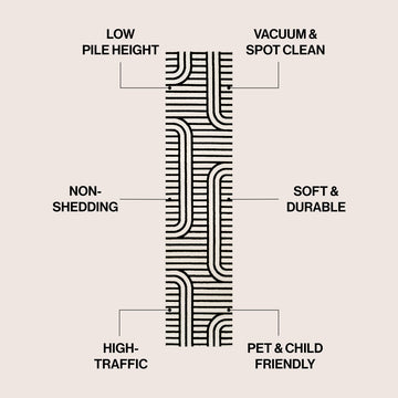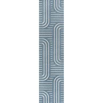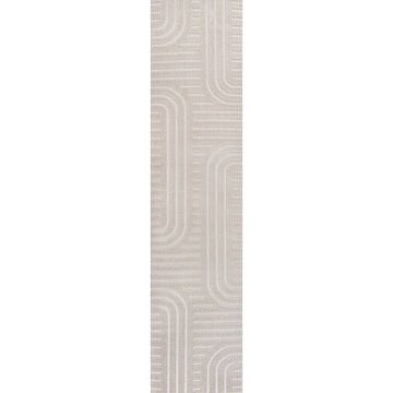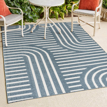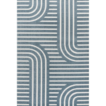 The geometric pattern of this modern rug is inspired by minimalist Scandinavian designs. Soft polypropylene fibers are woven into stripes with abstract arch accents, in a high-low pile that accentuates the pattern. Use this easy-care, family-friendly rug on the porch or deck, or in high traffic spaces like a living room, dining room or entry.