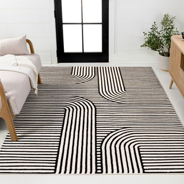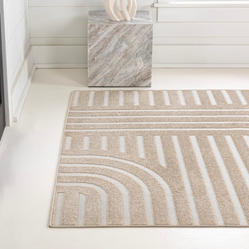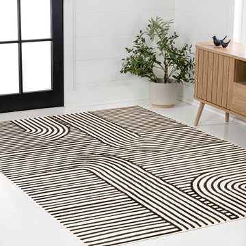 Anders High-Low MidCentury Modern Arch Stripe Two-Tone Indoor/Outdoor Area Rug